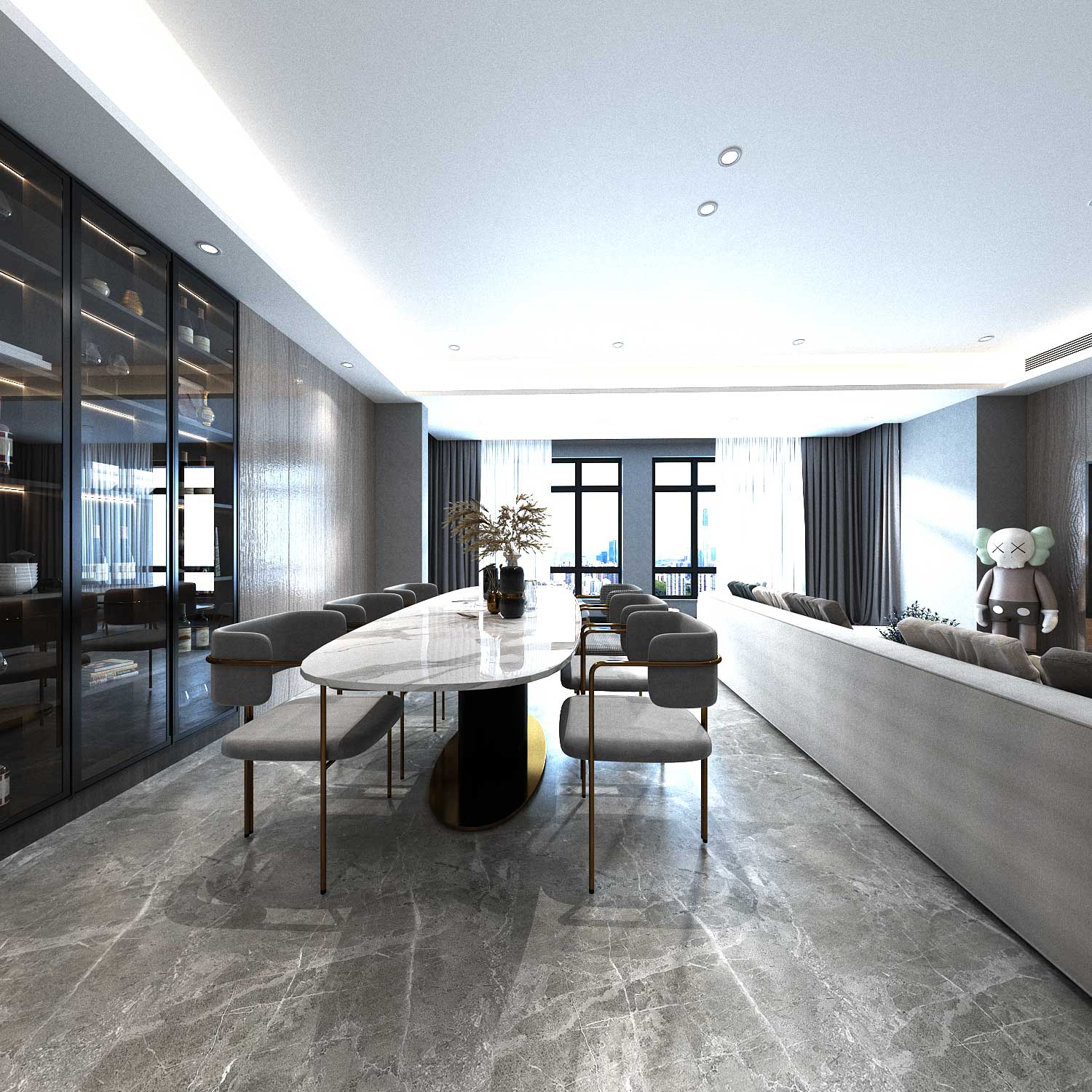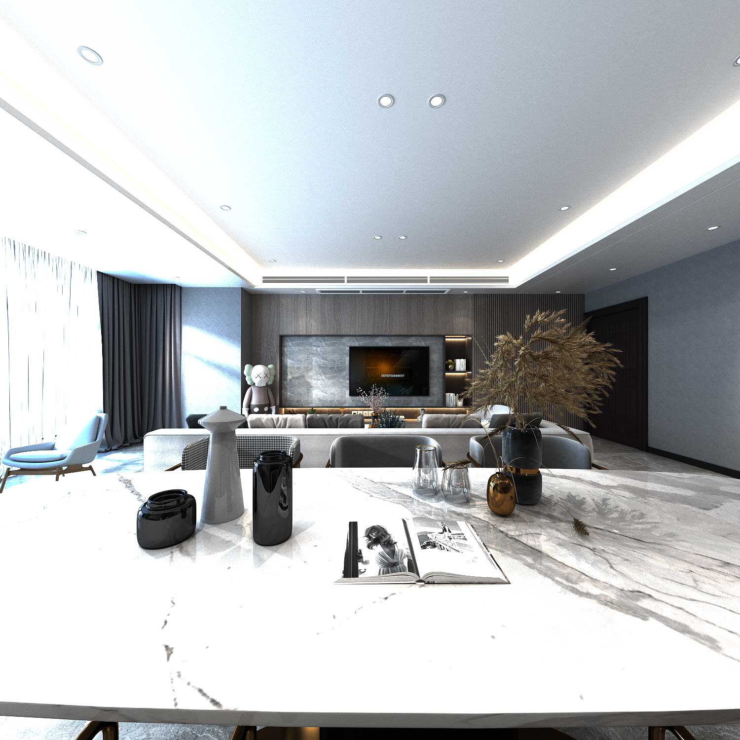 业主和我们团队来回一起探讨了很多思路,第一全屋采用无主灯设计;第二前卫的设计感,潮流的装饰物;第三展示空间要开敞,大开间;第四收纳空间要多;针对以上的需求,我们团队做出来大胆的设计。