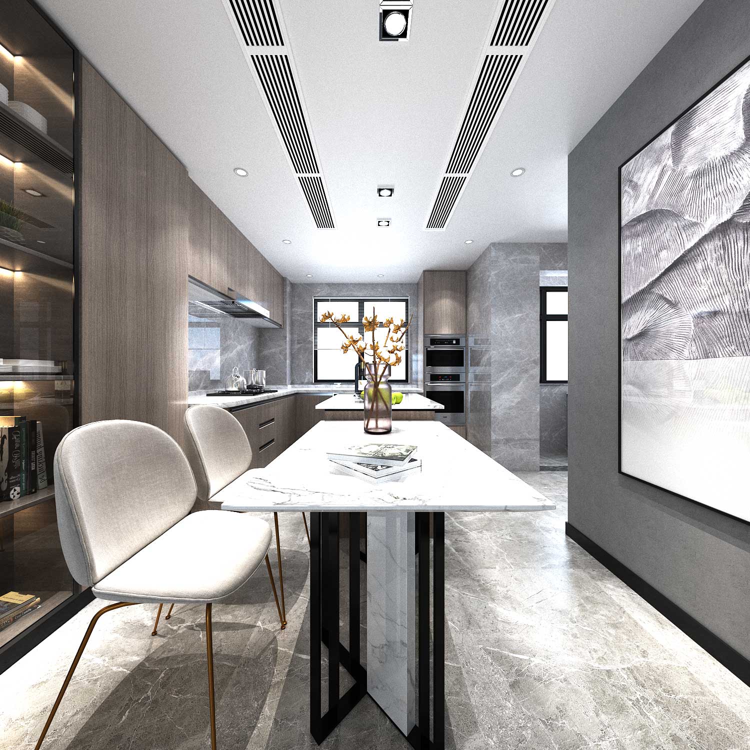 设计过程:业主是一名从事建筑行业的90后,他和太太是一对新婚夫妻,他们特意找到我们团队给他打造一个冷色调现代感的家,因为他们居住在传统中式风格的家中,深刻明白传统环境对他们的生活品质无法再提高,所以在这个新家中好好的收拾设计一番。